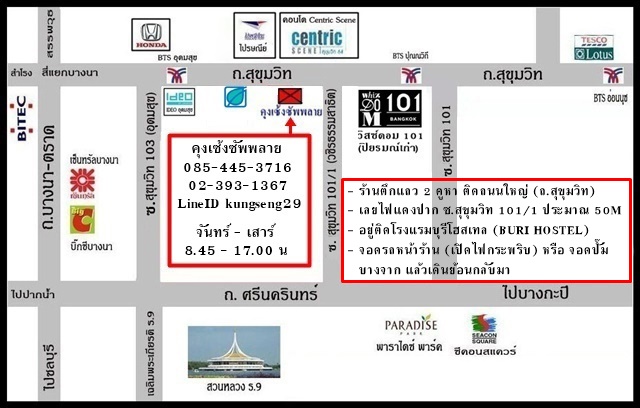 เลขที่ 3109 ปากซ.สุขุมวิท 101/1 (ซ.วชิรธรรมสาธิต) อยู่ติดถนนสุขุมวิท เลยหน้าปากซ.มาประมาณ 20 เมตร