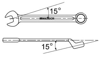 ปากประแจ และมุมแหวน ทำมุม 15 องศา