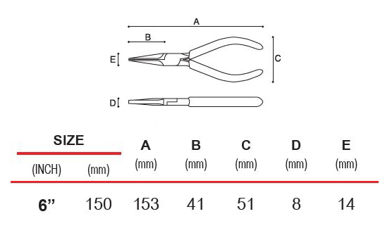คีมปากแหลมแบน ด้ามบาง 6" (150 mm)